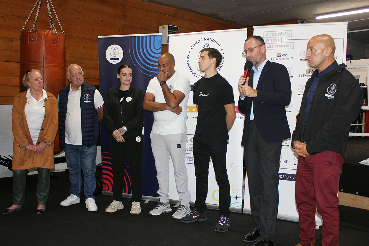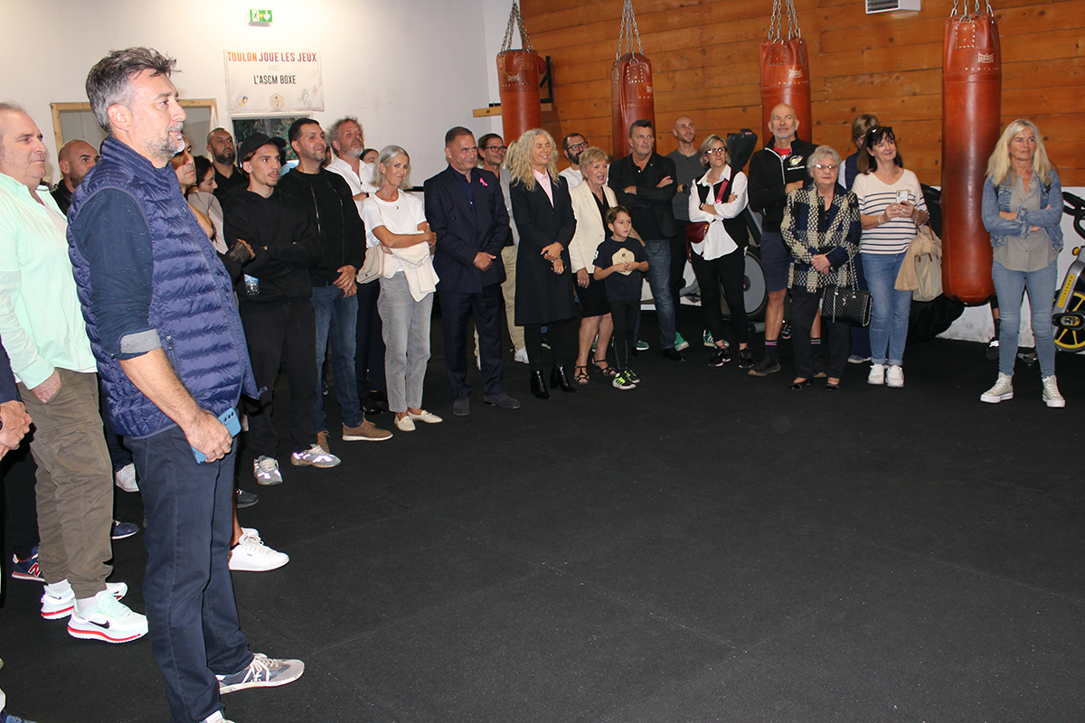 Tout comme la présidente du comité départemental de boxe Marie-Josée Robin, les conseillers départementaux Valérie Mondone et Michel Bonnus étaient également venus lui témoigner leur respect. « Si on est tous là, avec le sourire, c'est que tu fais l'unanimité. Tu fais les choses avec beaucoup d'humilité, tu fais partie des gens qui donnent envie de se battre, à moi le premier et tu es devenu incontournable dans la ville. Merci et bravo » déclarait celui qui est également sénateur, avant de céder la parole au président de la section boxe de l'ASCM Toulon, Cyprien Fonvielle : « Quand on est président de club, on est très heureux d'avoir quelqu'un comme lui. La partie prévention, cette volonté d'aller chercher les publics pour utiliser la boxe comme outil pédagogique, l'ouverture et le développement de cette salle à La Beaucaire, c'est lui. Il vient de donner de son temps pour l'association, et même plus que ça. Tous ceux passés par l'ASCM mesurent à quel point il est un acteur essentiel car il a cette capacité à lire dans les gens au-delà de ce qu'ils perçoivent d'eux-mêmes ».