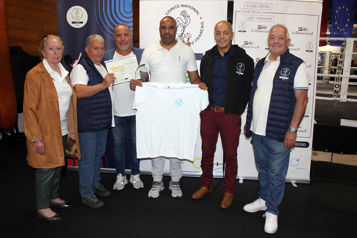 Plus à l'aise au bord d'un ring que pour parler au micro devant une telle assemblée, le héros du soir a tout de même pris la parole : « Merci à tous d'avoir répondu présents à mon invitation : mes élèves, les adhérents du club, les acteurs des quartiers et les partenaires qui m'aident souvent, les élus toulonnais et le CDOS pour cette récompense, ça me fait vraiment chaud au coeur. Et merci aussi à ceux qui m'accompagnent dans l'ombre ». Avant de terminer la cérémonie par un apéritif convivial offert par le club, "Momo" Maghraoui a reçu un "Trophée du Sport Varois", un diplôme et un bon d'achat offert par "Terre de Running" (enseigne partenaire de la manifestation) des mains des membres de la commission "valorisation", qui ont également remis au président du club un bon d'achat de 100€ offert par le CDOS 83.