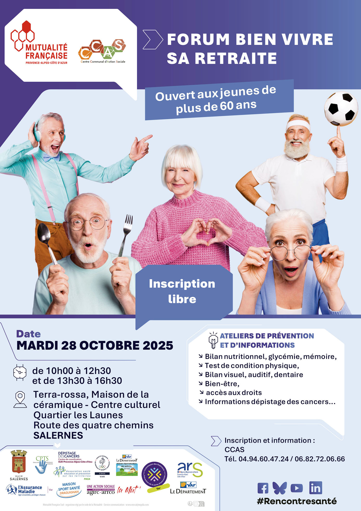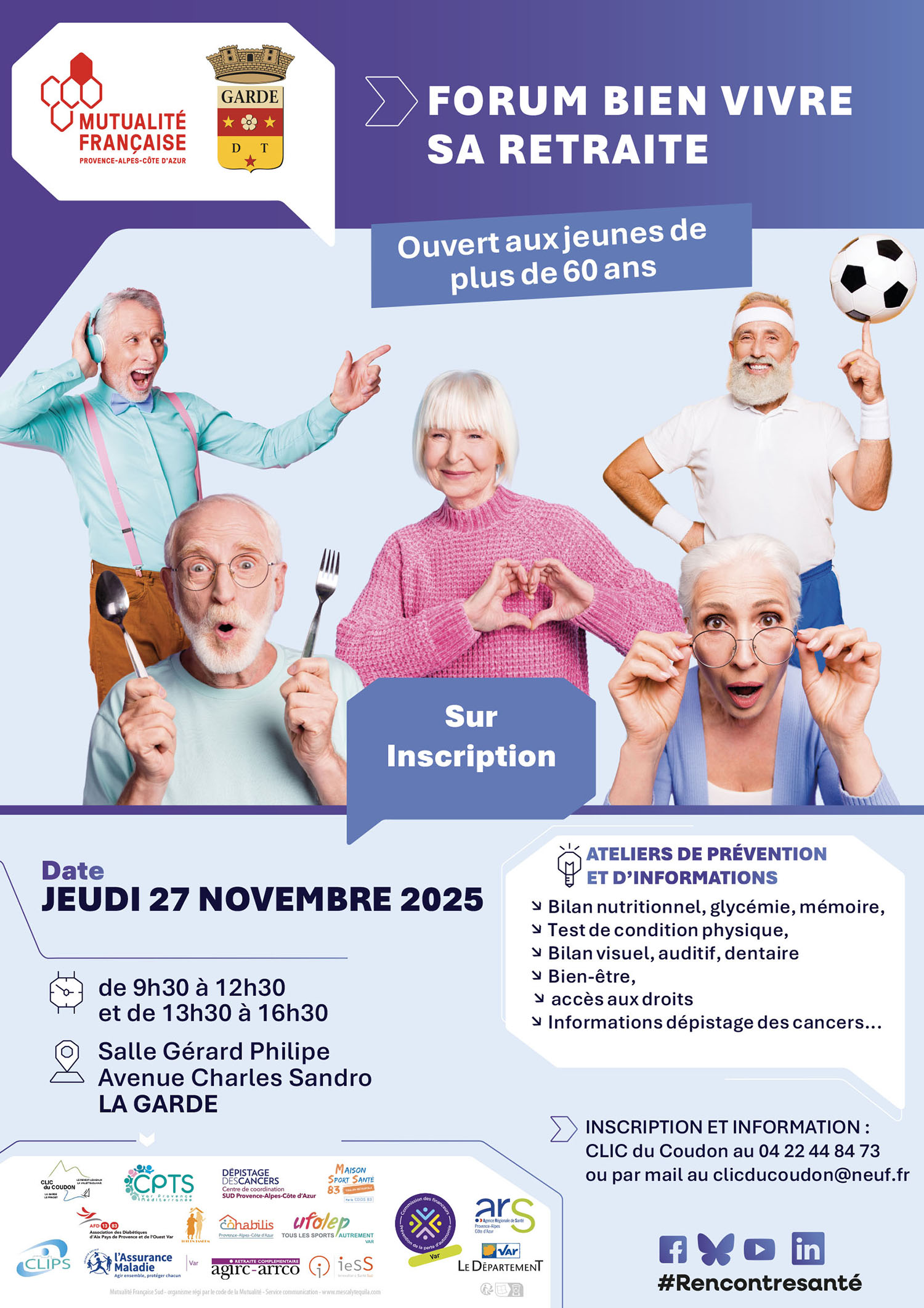 Amené à participer aux différents forums intitulés "Bien vivre sa retraite", organisés tout au long de l'automne 2025 par La Mutualité Française, le CDOS 83 était présent à La Cadière d'Azur le 22 septembre, à Garéoult le 9 octobre et à La Valette-du-Var le 16 octobre.