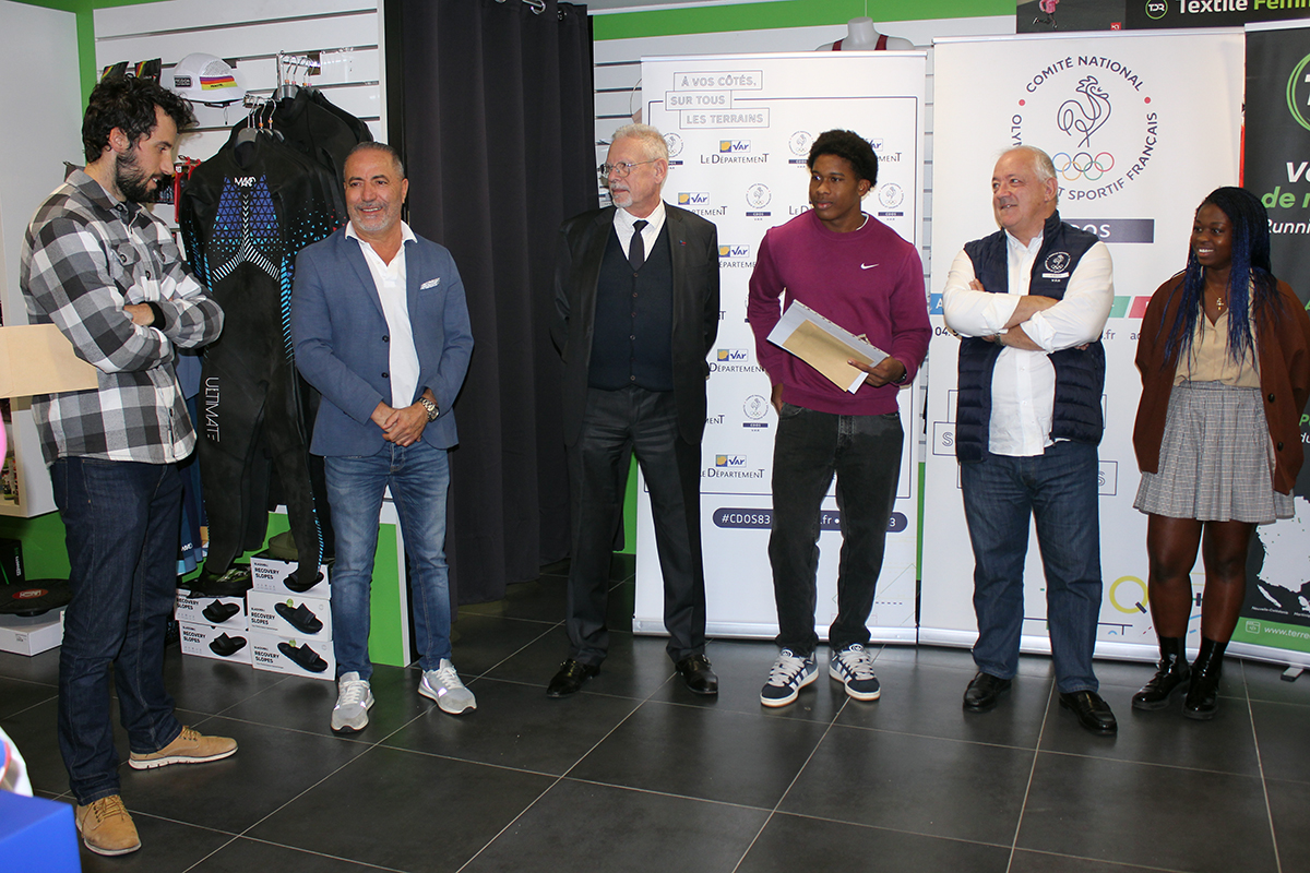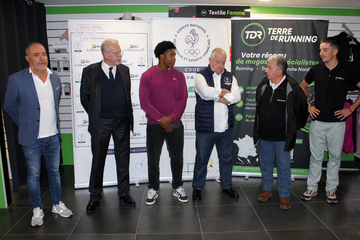 Vainqueur du titre national du triple saut chez les U20 en février dernier, Weaven Metainville a reçu un "Trophée du Sport Varois" dans la catégorie "Champion" ce jeudi 6 novembre 2025, lors d'une cérémonie organisée au magasin "Terre de Running" de La Garde (partenaire du dispositif), en présence notamment de membres de la commission "valorisation" du CDOS 83, de ses deux entraîneurs, et du président du conseil départemental du Var, Jean-Louis Masson.