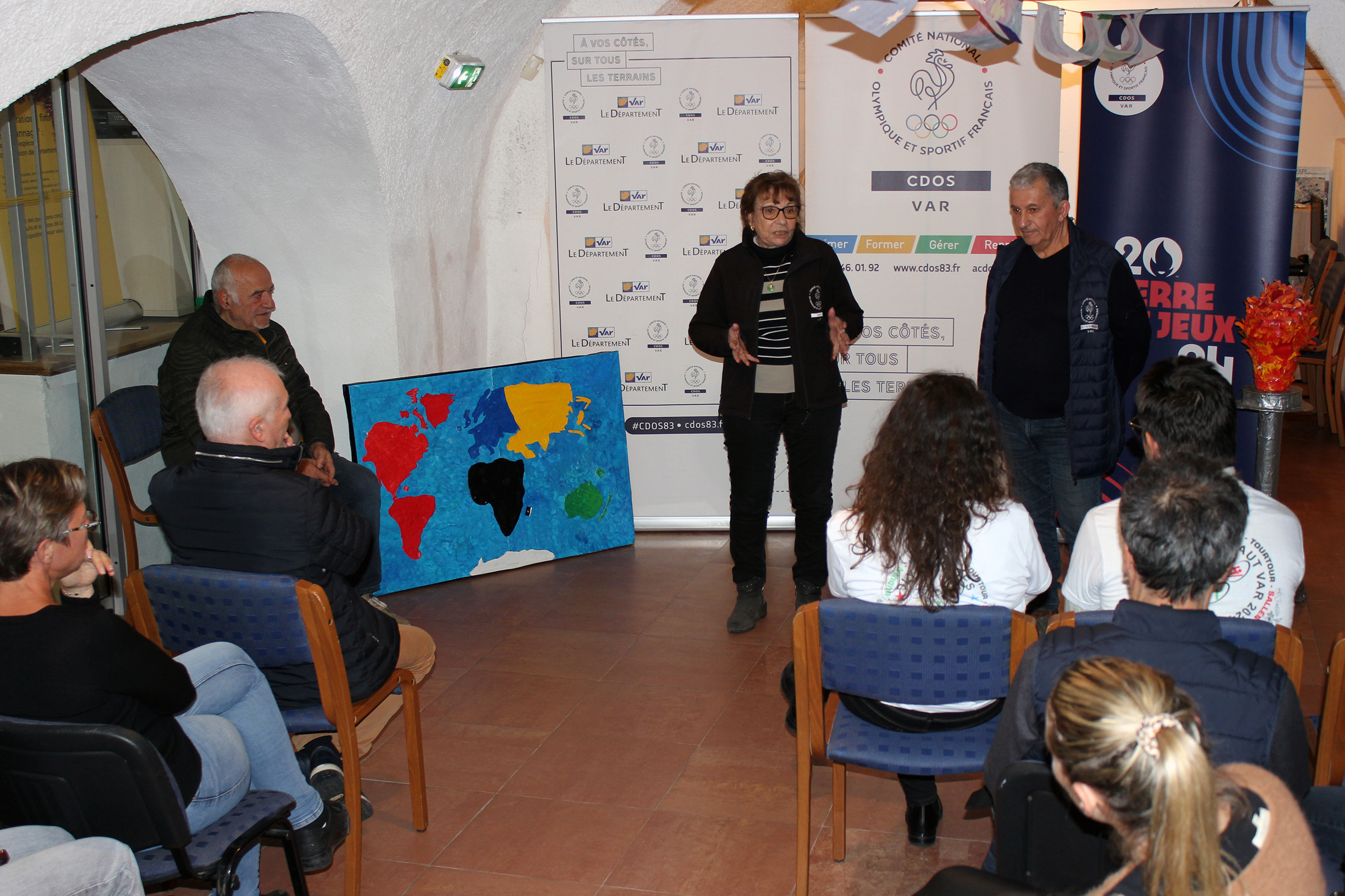 Après le mot de bienvenue du maire de Villecroze, qui a remercié le comité olympique pour cette cérémonie honorifique, Lucienne Roques, vice-présidente du CDOS 83, a expliqué la raison de cette récompense : « J'avais assisté à la première édition aux Salles-sur-Verdon juste avant le passage de la Flamme Olympique quand j'étais encore présidente du CDOS 83 puis à la seconde à Villecroze. J'ai été émerveillée par le projet d'ensemble, le travail collaboratif, pédagogique et éducatif sur la durée, l'implication de la population locale et je l'ai proposé à notre commission "valorisation" ». Membre de cette commission, Marcel Albert complète : « On a de suite été favorable à cette proposition. On a trouvé le projet vraiment bien ».