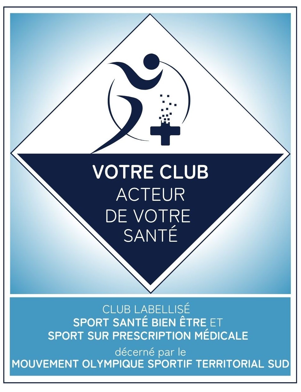 Ce label distingue les clubs engagés dans un développement du sport santé au sein de leur structure comme une activité de pratique et de développement faisant partit intégrante de l'offre du club au même titre que l'enseignement ou la compétition par exemple. Votre club a formé son équipe (salariés et bénévoles) et est engagé dans des partenariats et politiques publiques de remise en mouvement.